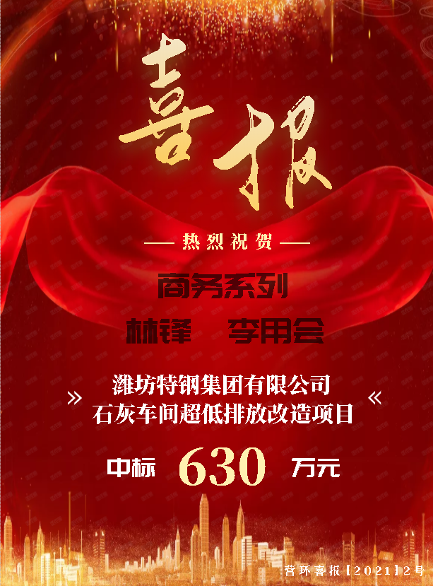 營口市環(huán)境工程開發(fā)有限公司中標(biāo)濰坊特鋼集團(tuán)有限公司石灰車間超低排放改造項(xiàng)目